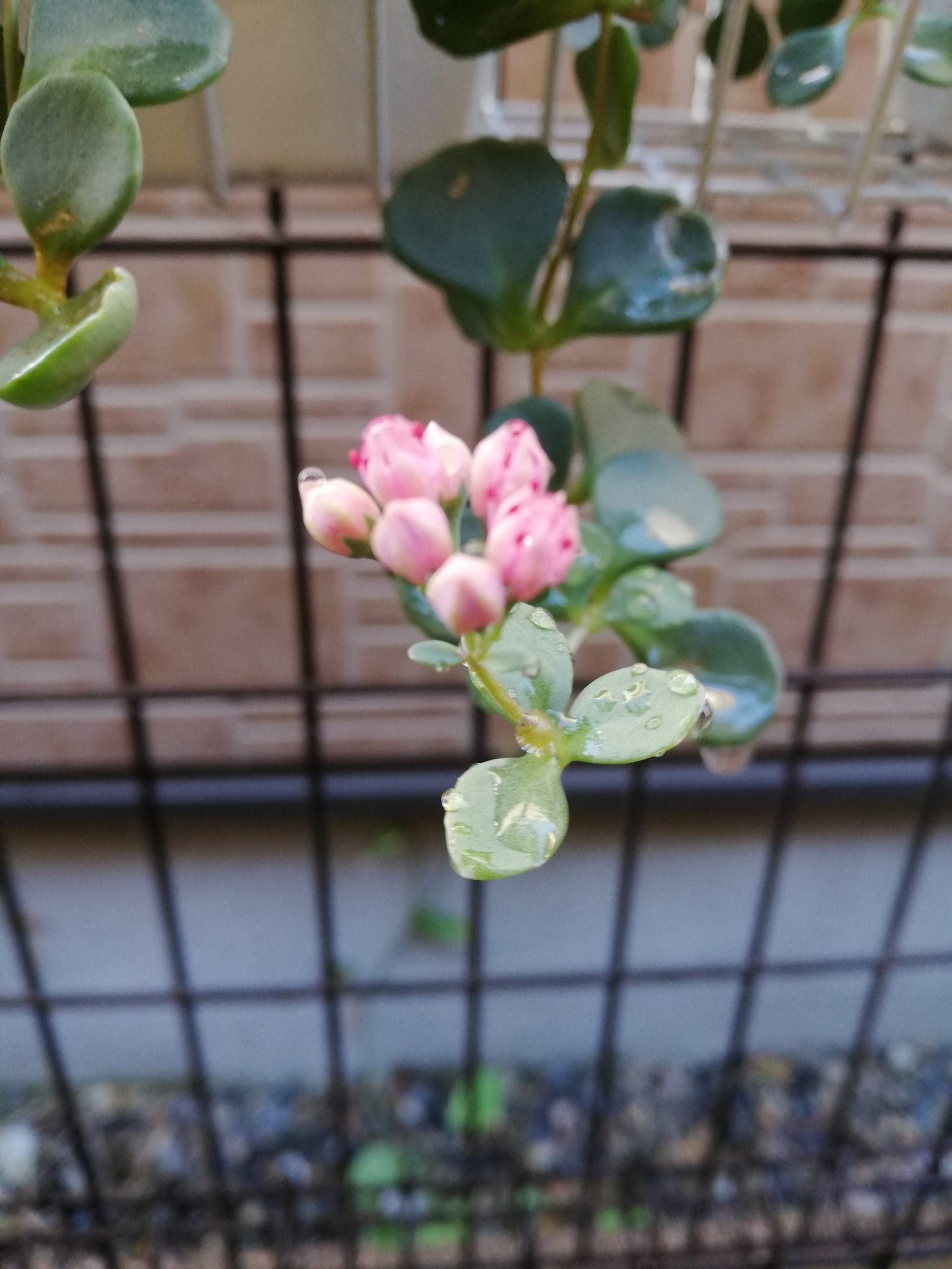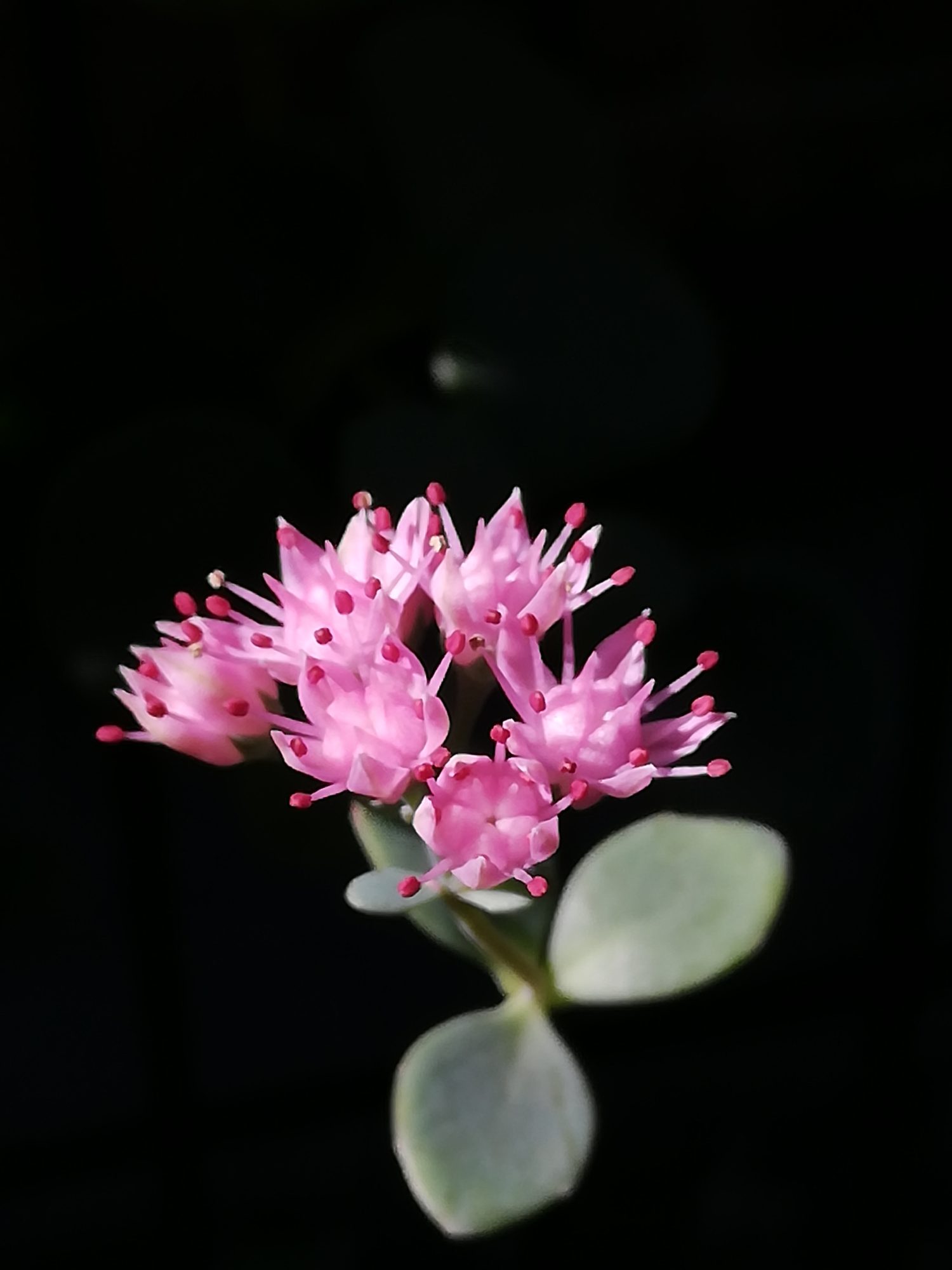 2021/10/30(土)ミセバヤ、開花しました!ブルーベリーの葉、また紅葉している葉、見つけました!(写真左側、ミセバヤの蕾。写真中央は、ミセバヤが開花した状態)